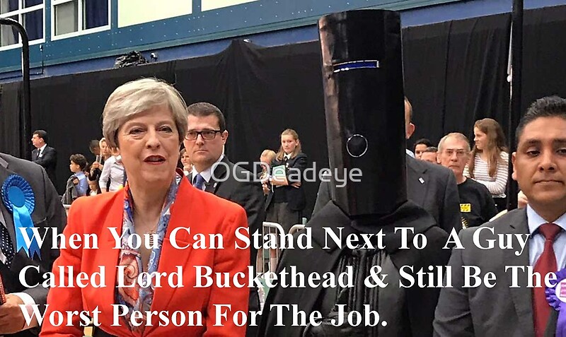 En , Lord Buckethead fait campagne pour les élections à Maidenhead contre la Première Ministre Theresa May,. Il reçoit 249 voix, soit 0,4 % des voix lors de cette élection générale, son meilleur score en trois élections,. Dans un article humoristique, The Guardian décerne à Buckethead le prix de la Meilleure politique pour son engagement à ramener Ceefax. Quelques jours après les élections générales de 2017, Lord Buckethead a fait une apparition sur l'émission américaine Last Week Tonight avec John Oliver, apparaissant comme une alternative comique à Theresa May pour diriger le Royaume-Uni dans les prochaines négociations sur le brexit,.